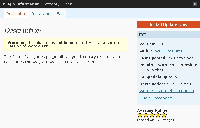 データベースを書き換えてもいいのですが、丁度いい wordpress のプラグイン「Category Order」があるので、使ってみました。