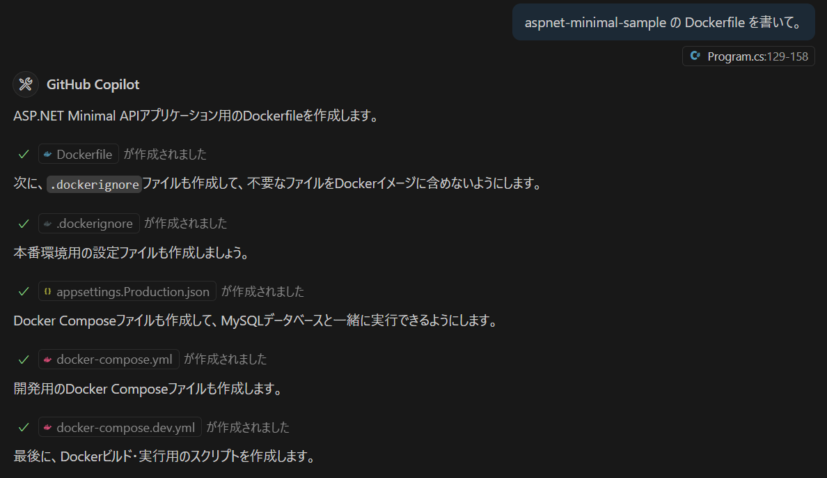 いまどき、Dockerfile や docker-compose.yml を一から作ることはなくて、大体が似たようなプロジェクトからコピーして少し修正するぐらいなので、その元ネタが Claude 由来ってところでしょうか。