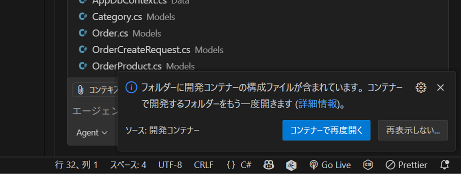 そんな訳で、無事「開発コンテナ」の中での実行まで完了