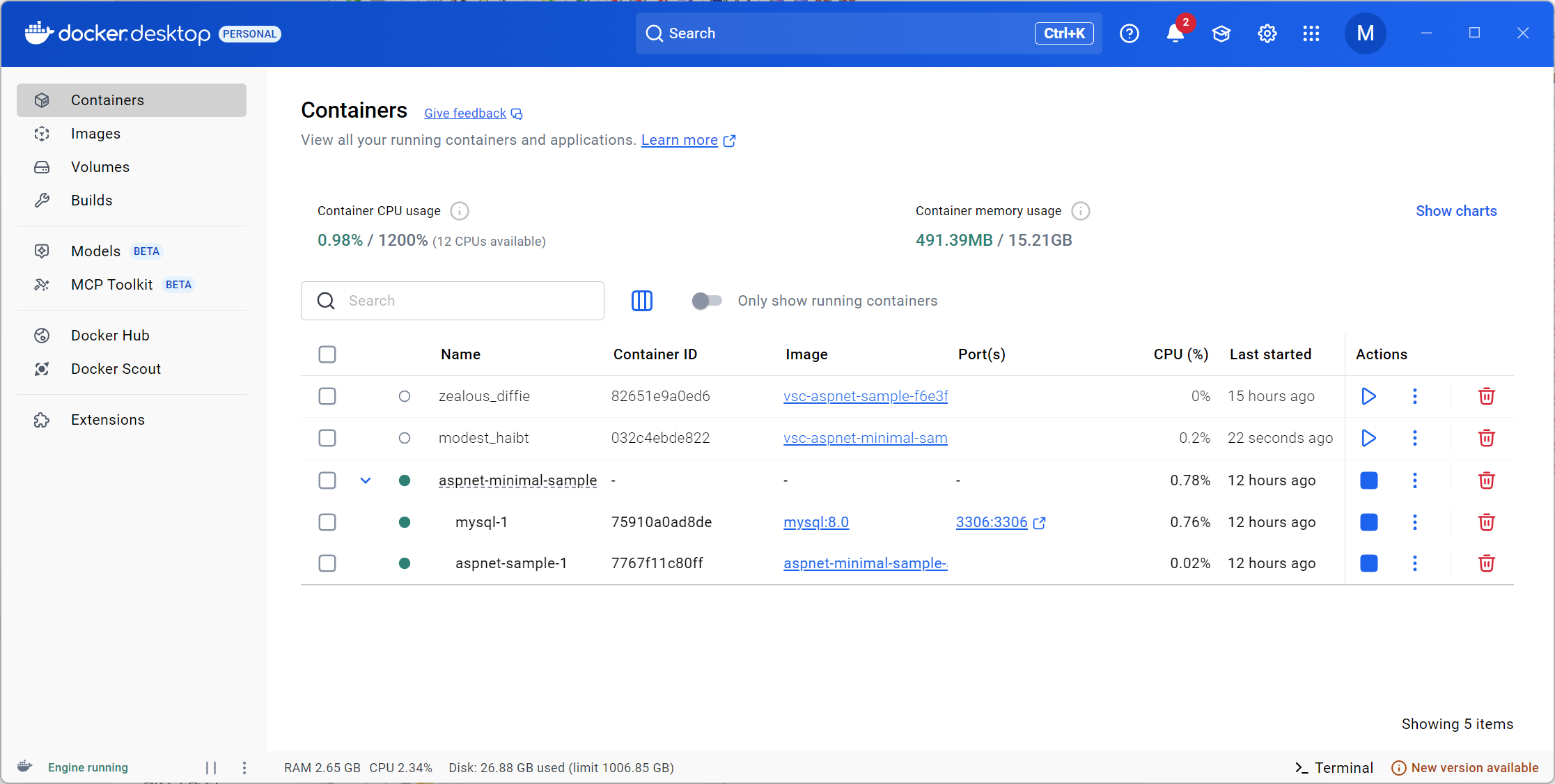 私の場合、xamp での mysql も動いているので mysql-1 の 3306:3306 も変えないと駄目なんですが、ひとまず、これは終了。あとで、azure にデプロイを試していきます。