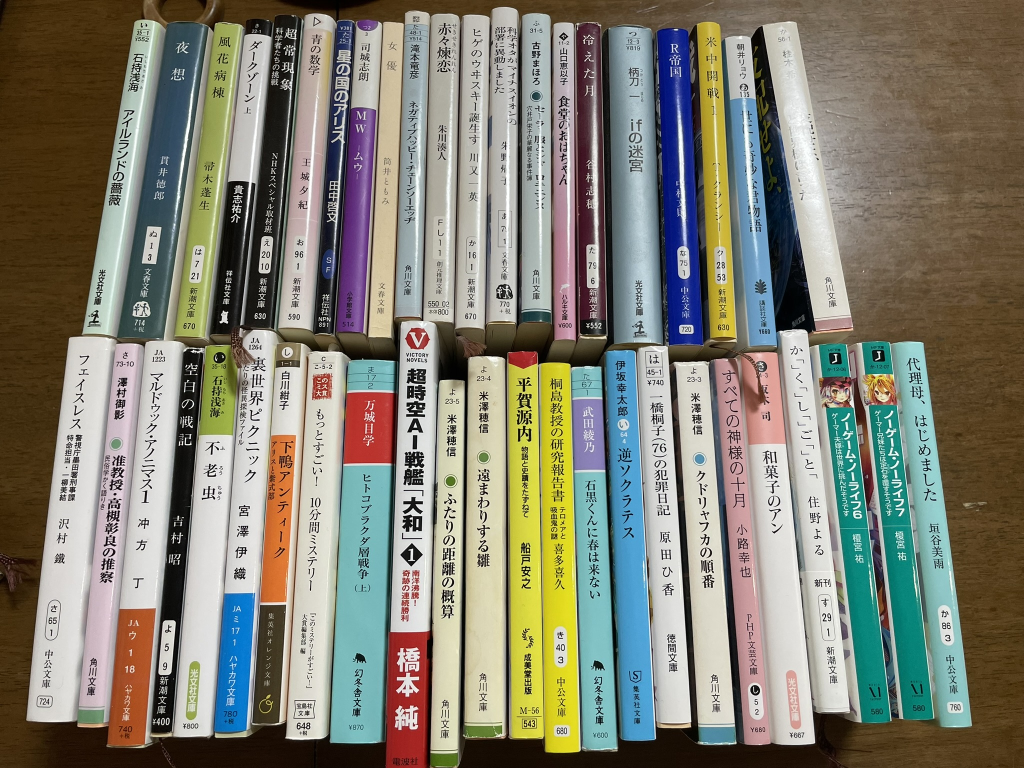 ちなみに、小説ですが私の場合は2,3か月程度で、こんな風に多読をします。金銭的には新刊で買うと辛いので BOOK OFF 等で 100 円程度で買ってきます。いわゆる乱読を意識的にやります。1冊読むのに、1,2日間ぐらいで時間で言えば、2時間弱位の流し読みです。これで文章のパターンを覚えた上で、もろもろの短編を書く、というのを今やっています(乱読自体は20歳代のころからやっているのですが、それは書評日記を書くためだったりするので、ちょっと違う)