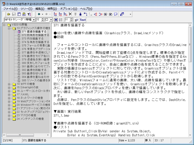 画面キャプチャは、秀和システムさんの、逆引き大全Visual Basic 2010 の原稿ですね。こんな風に章立てと番号で分かれているものは非常に便利です。