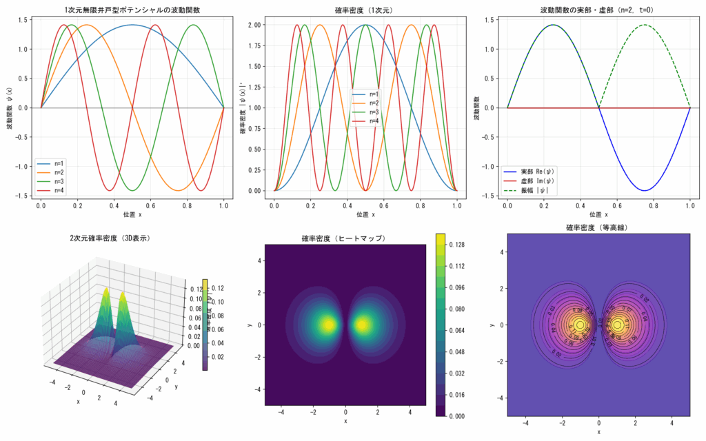 波動関数をグラフにしたものです、波動関数自体は数学的な式なので、画像AIに頼るよりも Python などで正確に描いたほうが良いです。ここぐらいまでは、コードやグラフを眺めて、ほぼ出ているだろうというレベルでしょう。