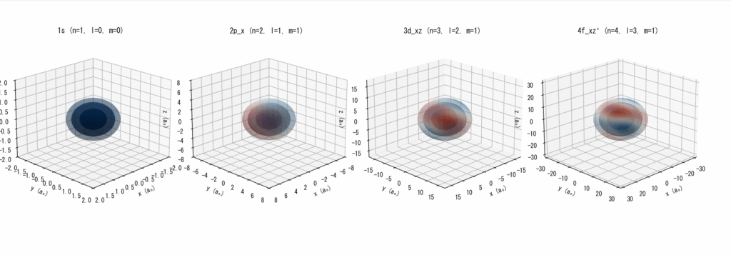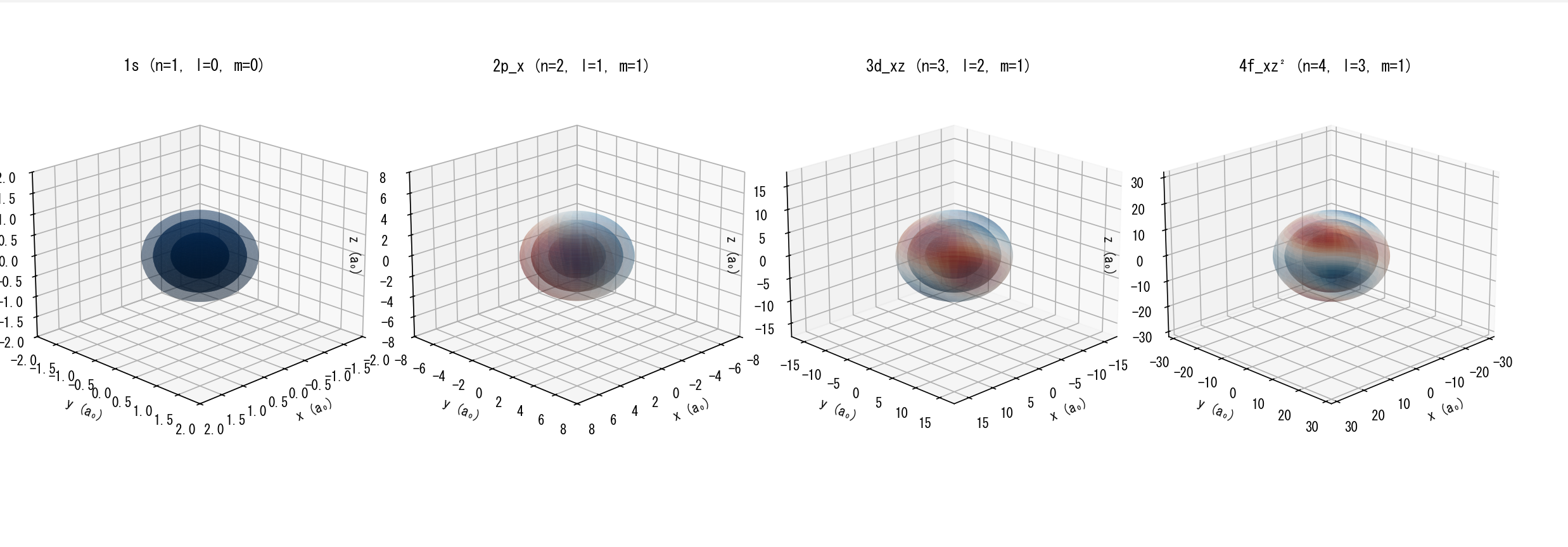 plt.savefig('水素原子の電子軌道.png', dpi=300, bbox_inches='tight')