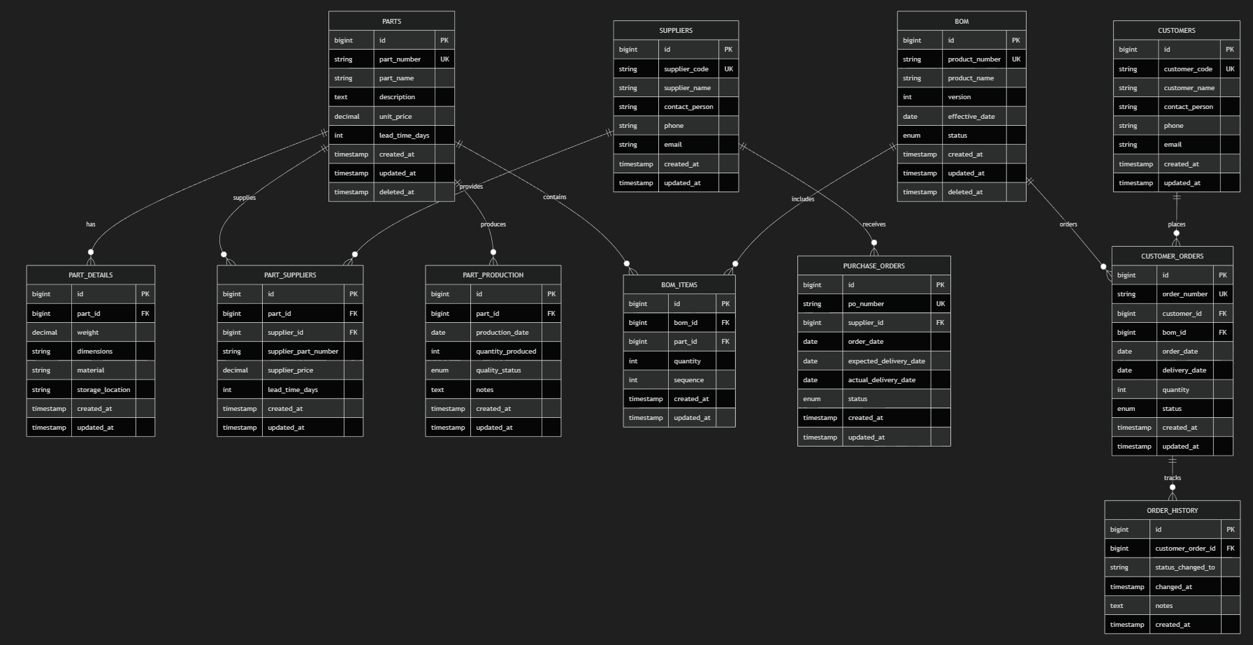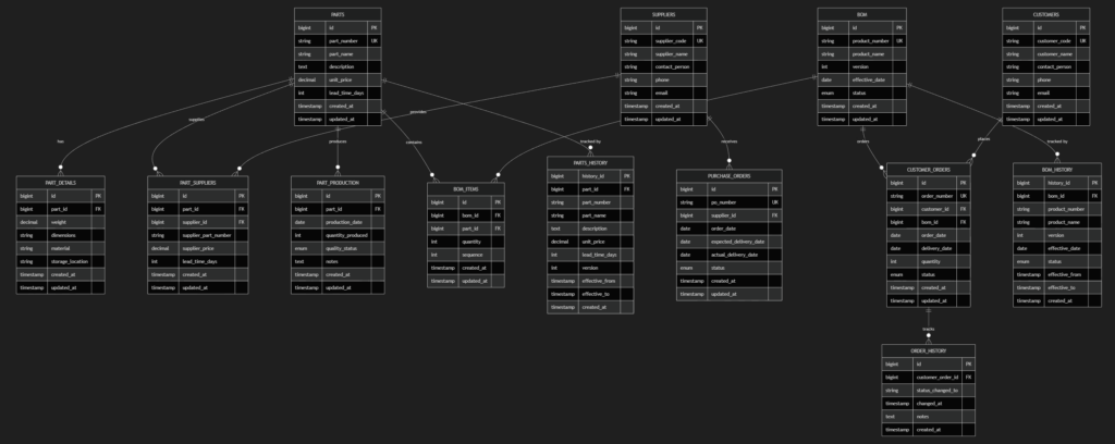 ただ、このテーブル構造の場合は、customer_orders と parts テーブルがやや近いところにあるので、そこだけ見れば構造が分かりやすいためとも言えますね。