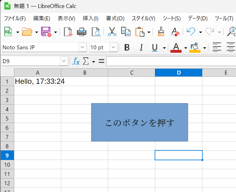 この状態で、マウスでボタンを押すと “A1” に時刻が表示されます。