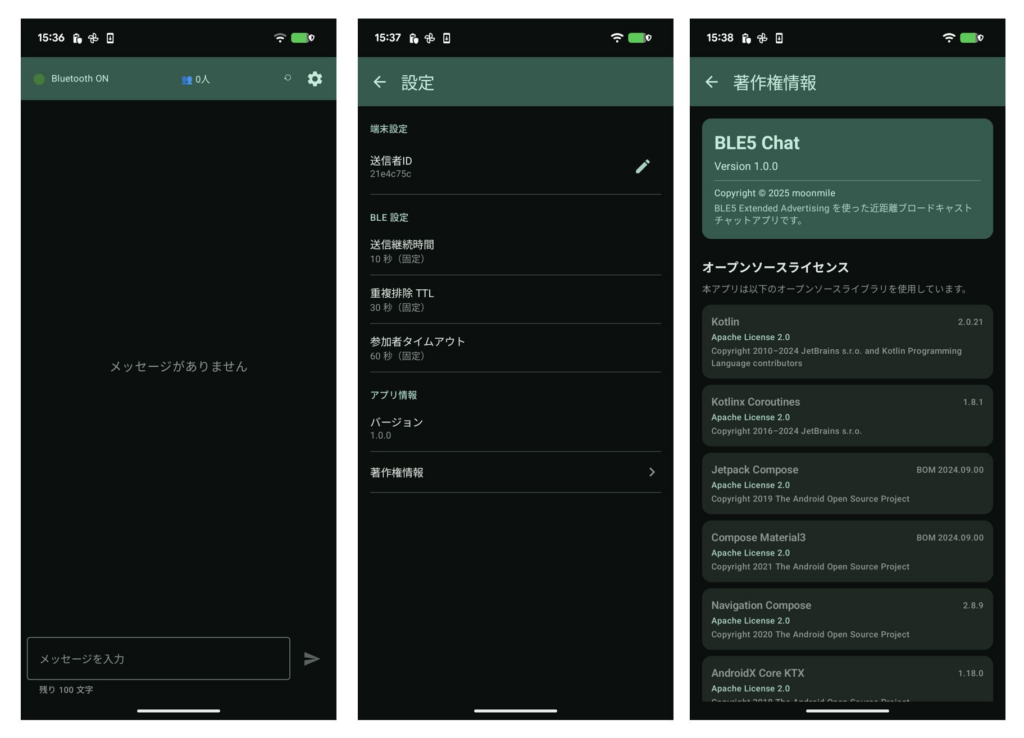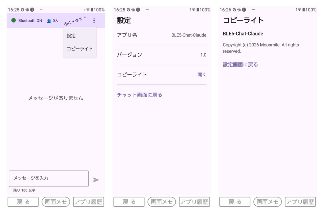 - ファイル: `src/app/src/main/java/net/moonmile/ble5_chat/claude/ui/CopyrightScreen.kt`