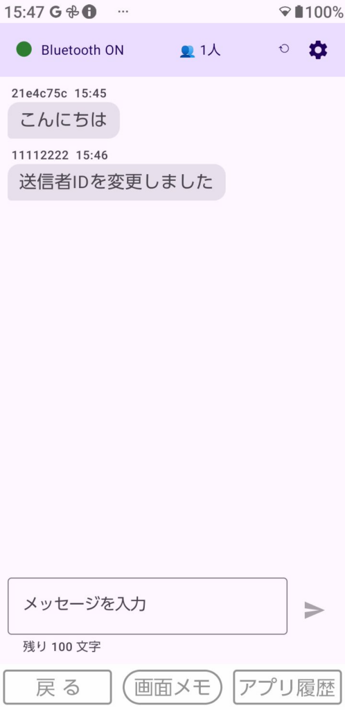 送信者IDは、MainActivity#selfIdFlow として保持されているので、文字列8文字であれば何でもいいのですが、このあたりは、設計書として書くか、AI コーディングのままとするとかで判断の迷うところです。チャットツールとしては、ニックネームを自分でつけたいところなので、8文字の制限はきついかもしれません。