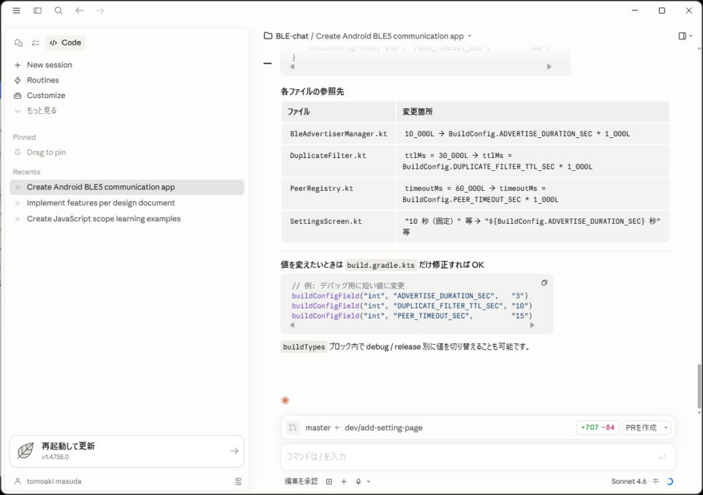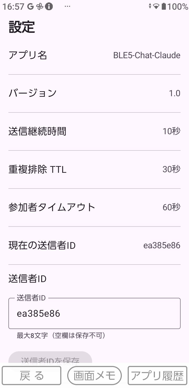- ファイル: `src/app/src/main/java/net/moonmile/ble5_chat/claude/ui/SettingsScreen.kt`