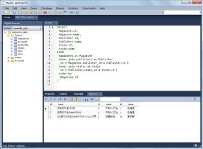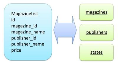 このような関係があるとき、雑誌の一覧を次のように取得したいと思う訳です。