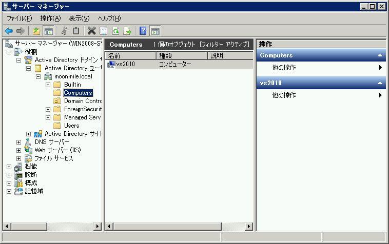- 「Computers」にあらかじめ、クライアントのコンピュータをいれておく。ここでは「vs2010」になっている。