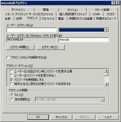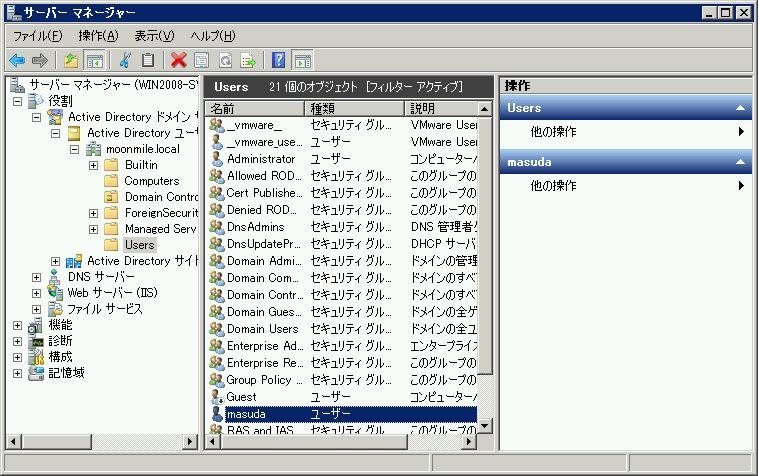 - 「Administrator」以外のユーザーを作成しておく。ここで作成したユーザーが、そのままドメイン内のアカウントになるので便利。