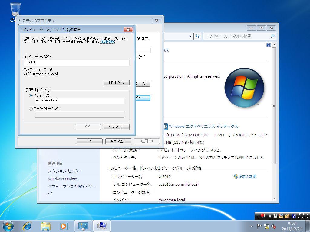 - VMWare で Windows 7 をインストール。お試しのドメインサーバーしか参照しないので、新たにクライアントは作成したほうが便利。
