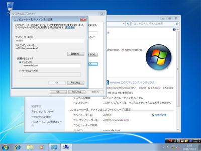 - マイコンピュータのプロパティから「設定の変更」をクリックして、ドメインに参加させる。