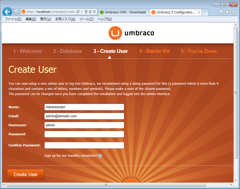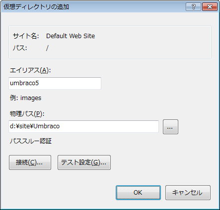 名前は「umbraco5」にしておきます。