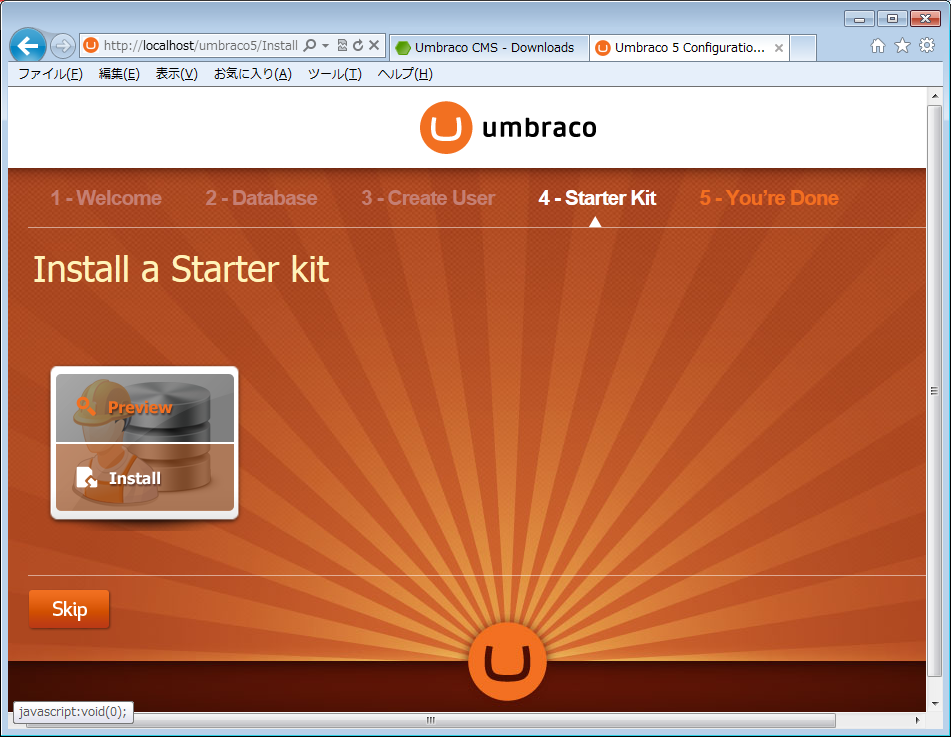 # ちなみに、現時点では Web Platform Installer を使って入れると、ver.4.7 が入るので、web form ベースのものがインストールされるので注意が必要です。ひとまず簡単にインストールしたい場合は、Umbraco の5分間インストール を参照すると良いです。