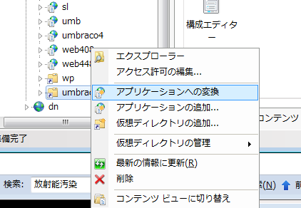 IIS マネージャを立ち上げて、仮想ディレクトリの追加