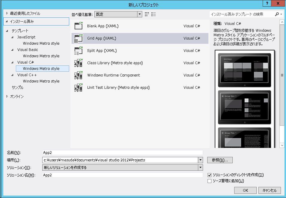 ちなみに、従来型の desktop の開発環境は有償版である Visual Studio 2012 Professional でしか使えません。7万円程度と結構高価なので趣味に使うにはちょっとと思う場合には、Visual Studio 2010 Express のほうを使ってみてください。