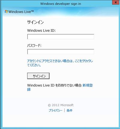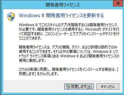 開発ライセンスの取得は、「ストア」→「開発ライセンスの取得」でできます。Windows Live ID は無料なので、無い場合は適当に取ってください。