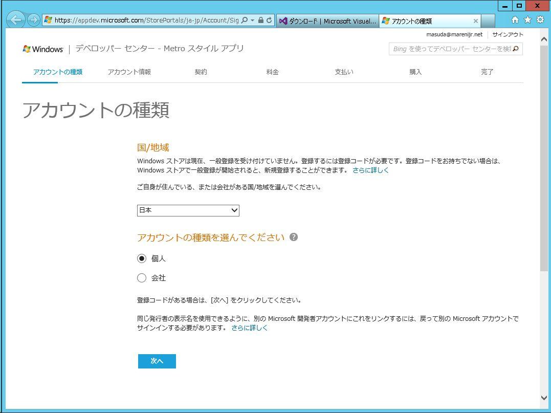 Windows Store 用の登録者コードを貰って、年間4,900円払えば公開できますよ、ってな感じです。現在登録者コードは、microsoft さんの dev camp に参加する(だったっけ?)ことになっています。まあ、個人の場合は正式公開を待ってもよいかなと。