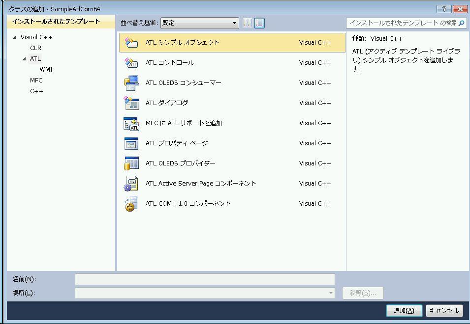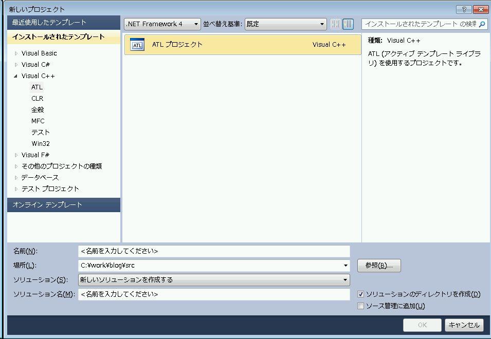 - Visual Studio 2010 で「ATLプロジェクト」を選択