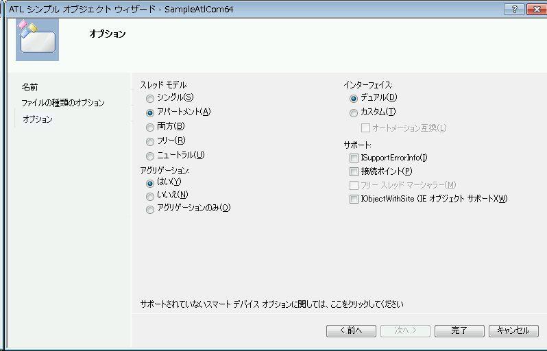 このテストで作ったのはシンプルな「ATLシンプル オブジェクト」なので、MFC やら外部 DLL を使っている場合は、もっと注意が必要ですよね。そのあたりでうまく参照設定できないのかもしれません。