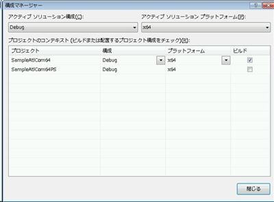 構成マネージャを使って「新規作成」をします。すると、Win32 の構成をコピーして「x64」の構成ができます。