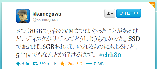Twitter / kkamegawa: メモリ8GBで3台のVMまではやったことがあるけど、ディスク …