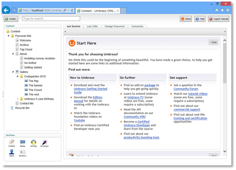 実質、日本ではUmbraco CMS でウェブページを作ろう しか、Umbraco関連の情報がないのですが、ASP.NET MVCに対応しているということで支援がてら。自分でも使いたいので。