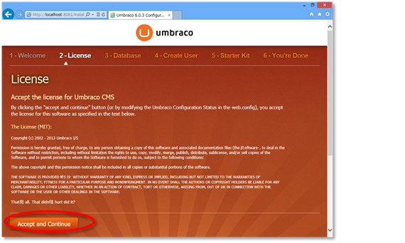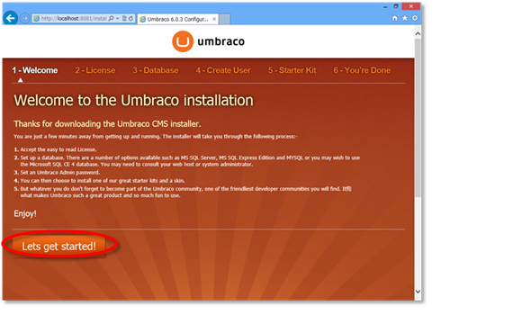 あらかじめ、Umbraco CMS – Home から UmbracoCms.6.0.3.zip をダウンロードしておく。