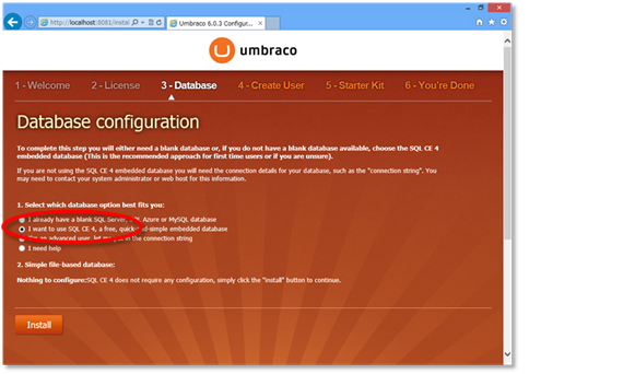 インストールを簡単にするために「SQL CE 4」に切り替える。