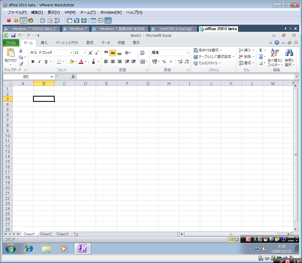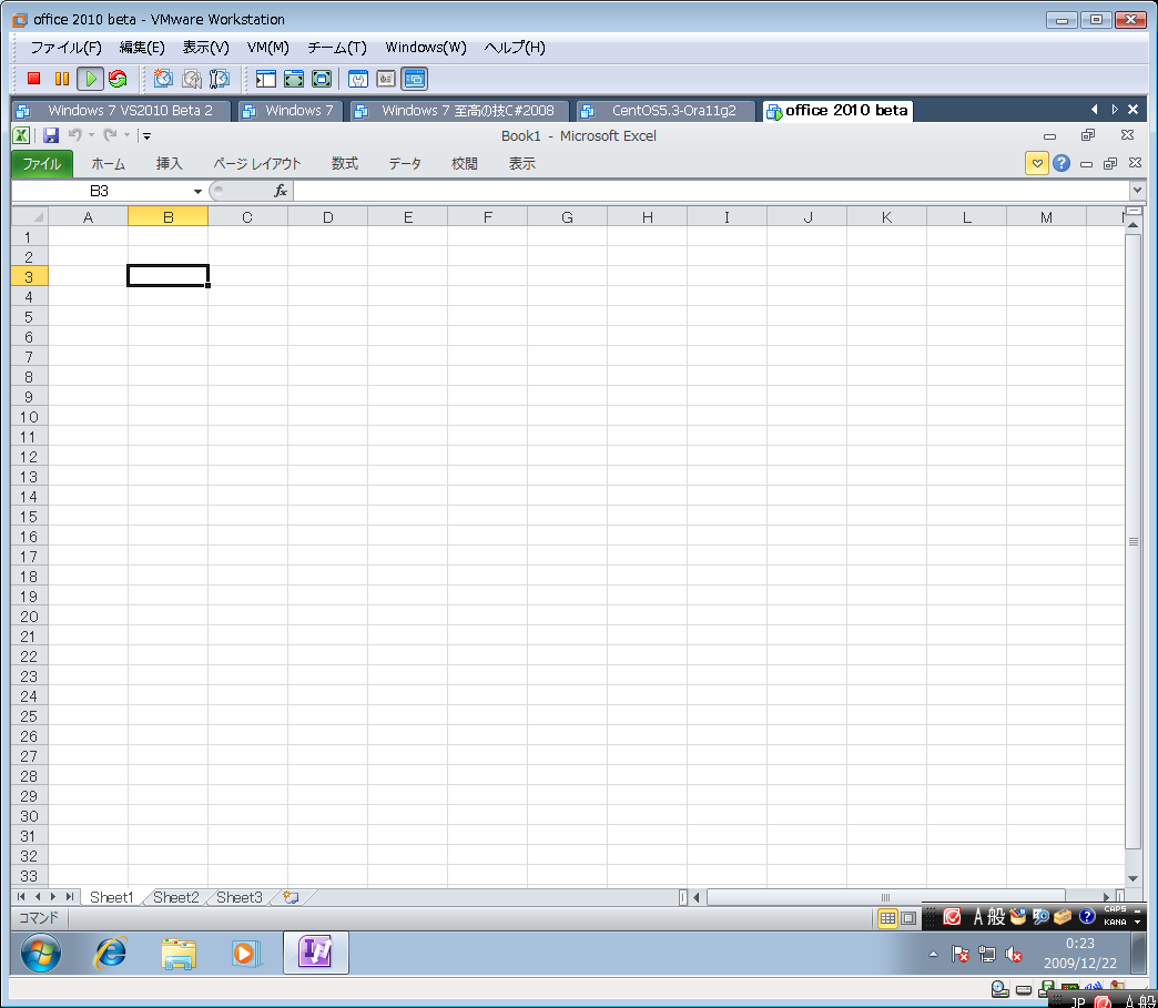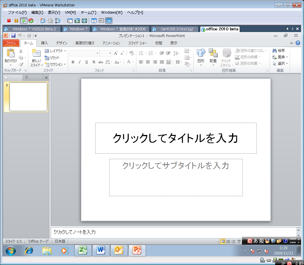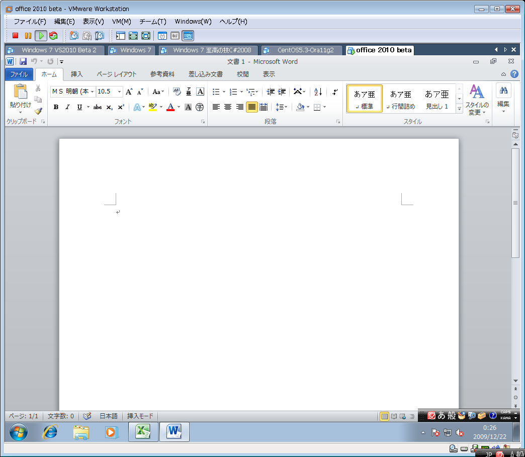 一か月遅れですが、MSDNから office 2010 beta をダウンロードして windows 7 on VMWare に入れてみました。