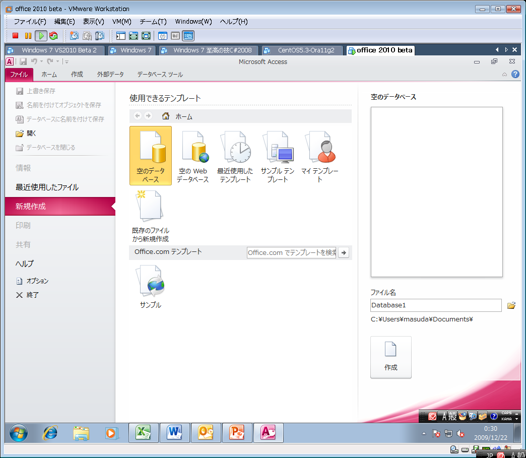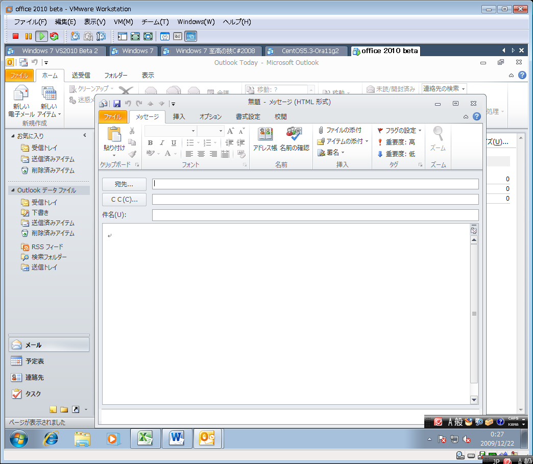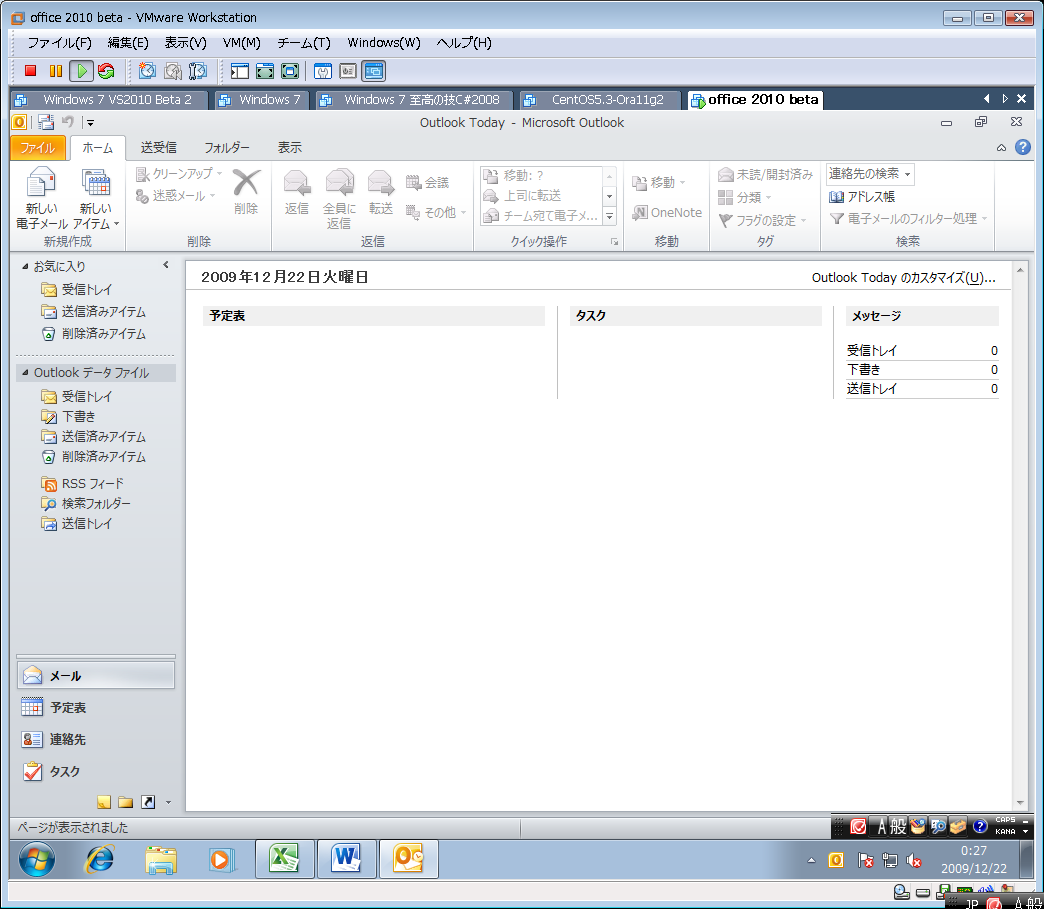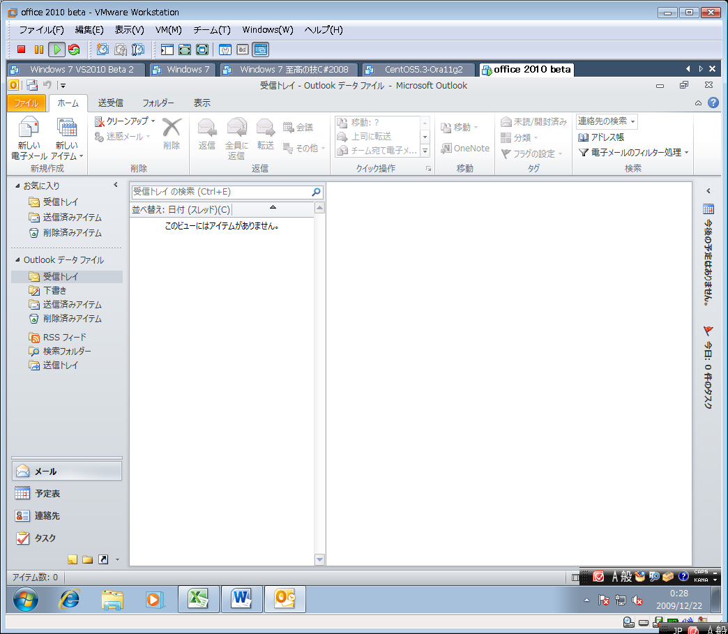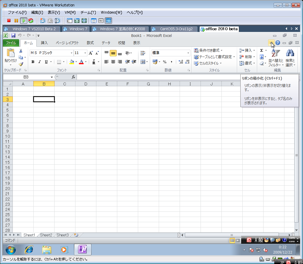 一か月遅れですが、MSDNから office 2010 beta をダウンロードして windows 7 on VMWare に入れてみました。