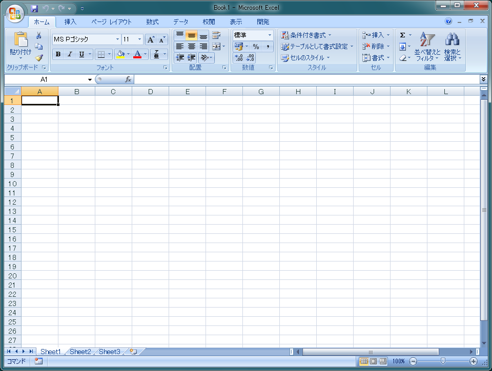 さて、インストールした後、まず起動するのが Excel です。仕事柄、これを起動する機会が多いので。リボンはどうなったのかなぁ、と。