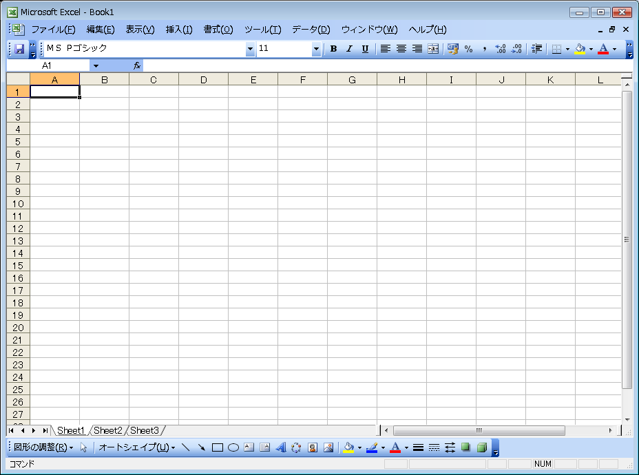 普段使いの excel 2003 は、こんな感じです。