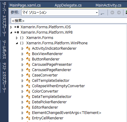 これは、Xamarin.Forms 製の XAML から、MS 製の XAML にコンバートしていることを示しているわけで、何等かの形で内部で Windows Phone 特有のコントロールにして持っています。少し調べていて、レンダリングの部分で Xamarin.Forms の Label から iOS の UILabel を取り出す – Qiita のように LabelRenderer などで変更できることが解りました。更に調べていくと、なんとか Renderer のようなものがいっぱいあります。