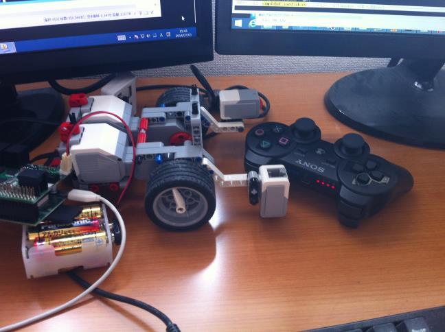 これは次の課題ですが、BrickPi/LEGO mindstorms EV3 には、モーター用のポートが4つついています。現在、車輪用に2つ使っていますが、他にもモーターを使えばクレーン用とかに使えます。これはあとで実験してみましょう。他に接触センサーとかカラーセンサーもついているので、それも確認して実装していきます。