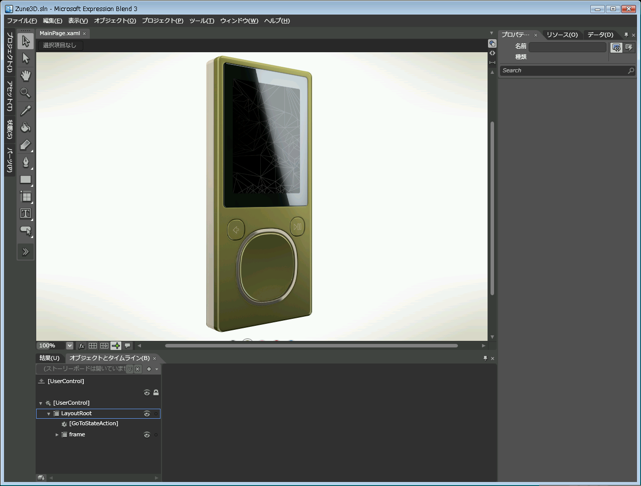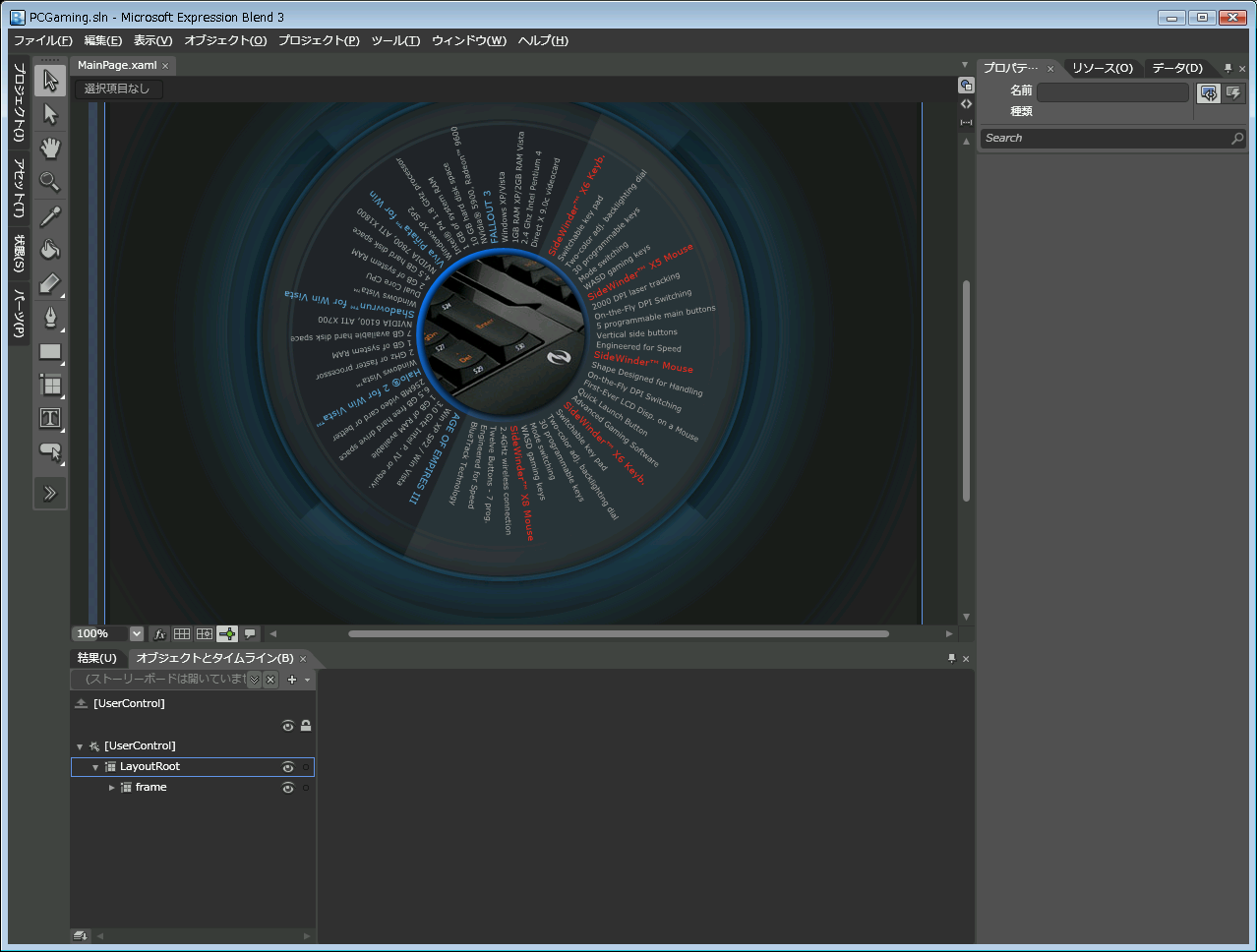 「Blend 3 のみで作れる」という謳い文句になっていますが、内部ではコードビハイドというC#のコードがぎっしり詰まっています。なので、これだと、素直に C# で作ったほうが楽そうですね。