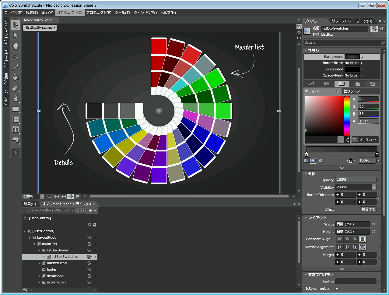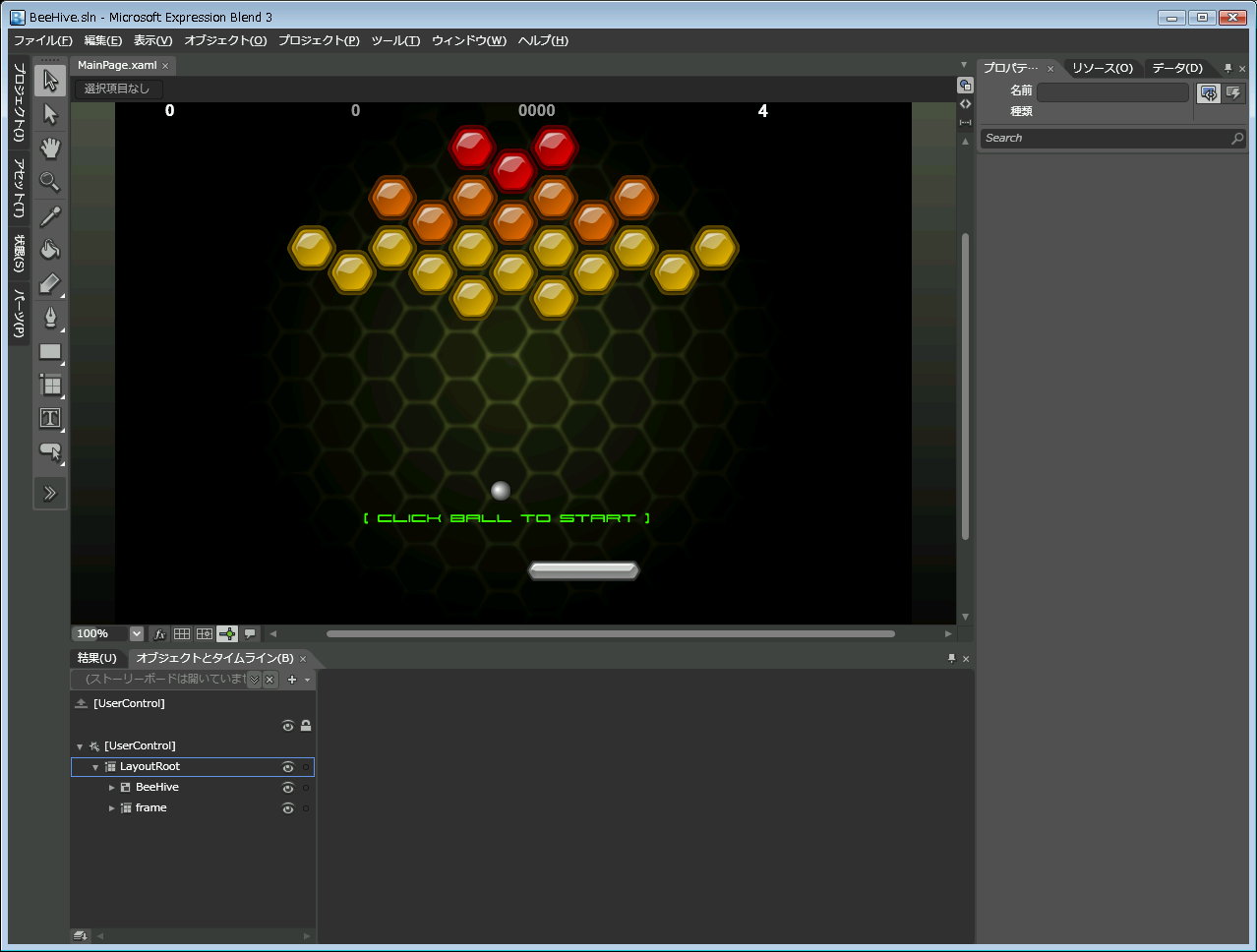 ちなみに、BeeHive のブロックやバーは、画像ファイルです。。。どうせならば、xaml で作って欲しかった。