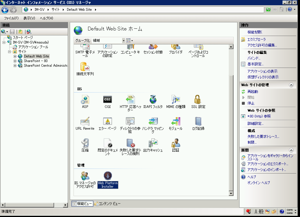 一度インストールすると、IISマネージャにアイコンが表れます。