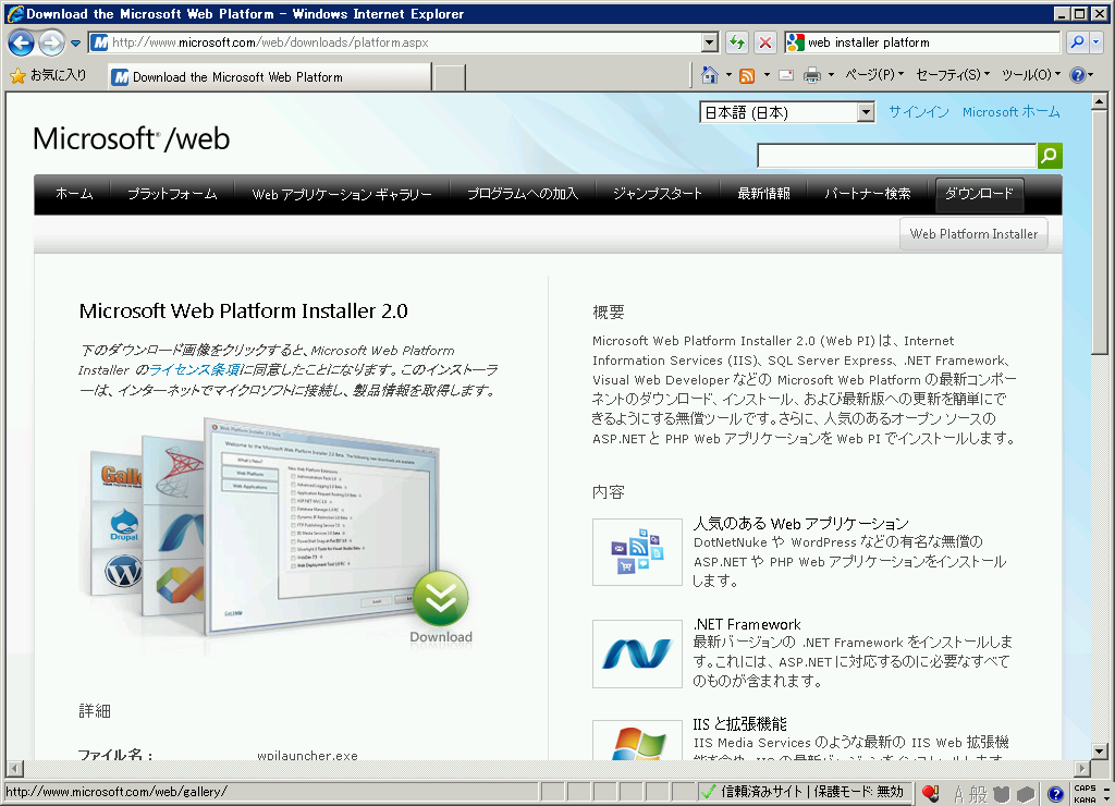 そこを自動で行ってしまうのが、Web Platform Installer というものです。