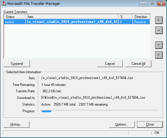 2.5GBなので、うちの場合は500KB/sec弱なので、2時間ぐらいですかねぇ。