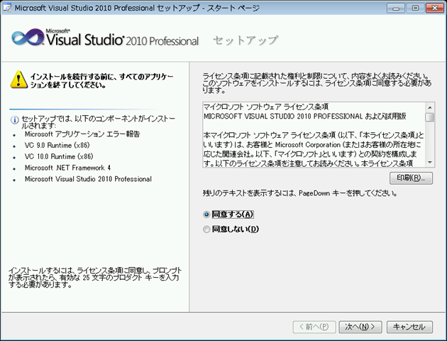 そんな訳で、MSDNのVisual Studio 2010 Professional版のインストールが完了しました。