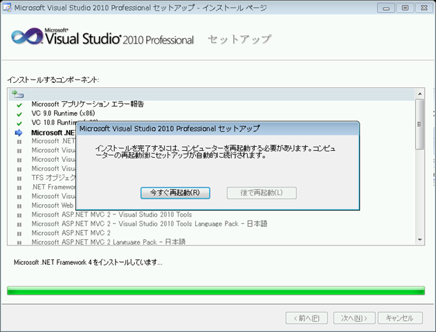 .NET Frameowork 4をインストールした後で、再起動します。