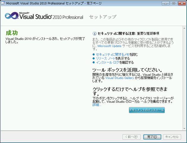 Visual Studio 2010 インストール完了