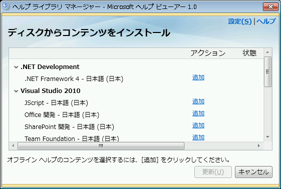 必要なものを「追加」でインストールしておきます。