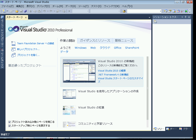 スタートページが変わっていますが、2008と似たような感じです。RC版にあった、WPF風の画面はやめちゃったようです。