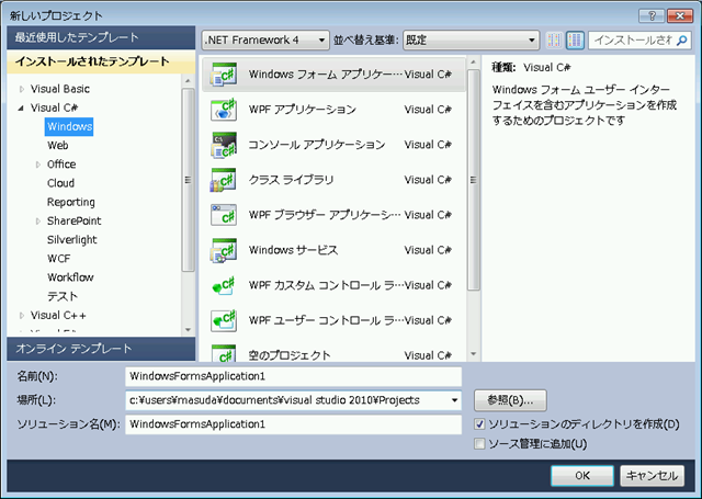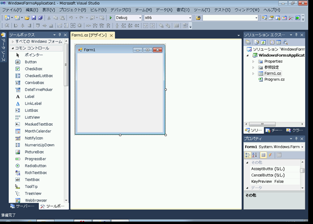 C#でWindowsフォームのプロジェクトを作成すると、