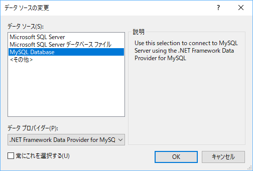 これを入れると、EF で「新しい接続」を選択したときに “MySQL Database” ってのが出るようになる