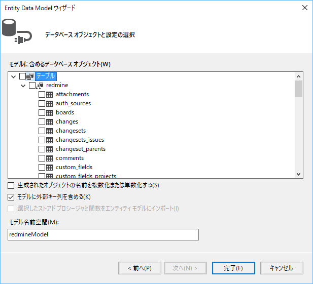 SQL Server に LINQ するときと同じようにクラス化するテーブルを選ぶ。